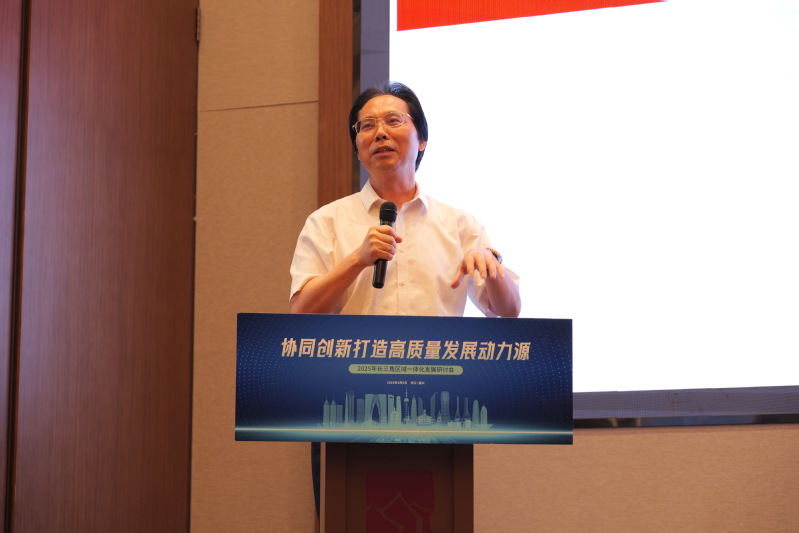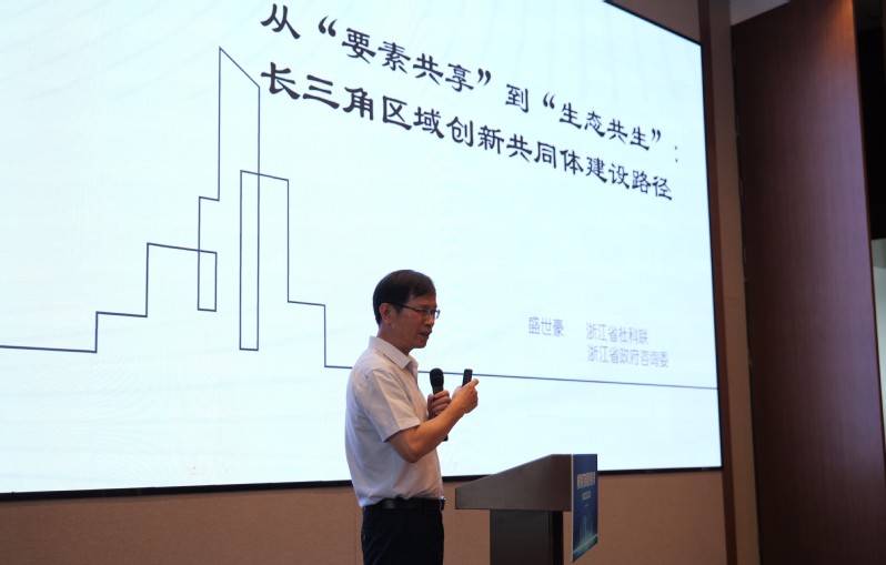 盛世豪教授以《从“要素共享”到“生态共生”:长三角区域创新共同体建设路径》为主题作了报告。他指出,长三角区域创新共同体建设是一个从“要素共享”向“生态共生”迭代升级的系统性工程,其演进机理主要是以“政策协同、要素流动与利益平衡”推动“破除壁垒—提升效率—巩固协同”。对比国际顶尖湾区,长三角仍存在国际化创新要素配置不足与生态活力差异等短板。未来,长三角区域创新共同体建设需聚焦“全球创新网络关键枢纽”的定位,通过要素市场化配置、创新生态协同、制度型开放和全链条服务体系建设四大路径,推动创新生态从“国内领先”向“全球引领”跨越,最终成为一个韧性足、活力强、价值共创的全球创新共同体。
