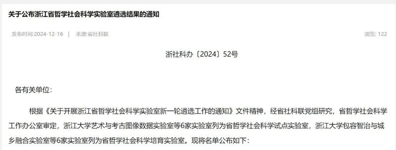 2024年12月16日,浙江省哲学社会科学工作办公室发布《关于公布浙江省哲学社会科学实验室遴选结果的通知》(浙社科办〔2024〕52号),浙江大学长三角智慧绿洲创新中心牵头申报的“浙江大学长三角智慧绿洲创新中心未来区域发展实验室”,正式认定为省哲学社会科学培育实验室。