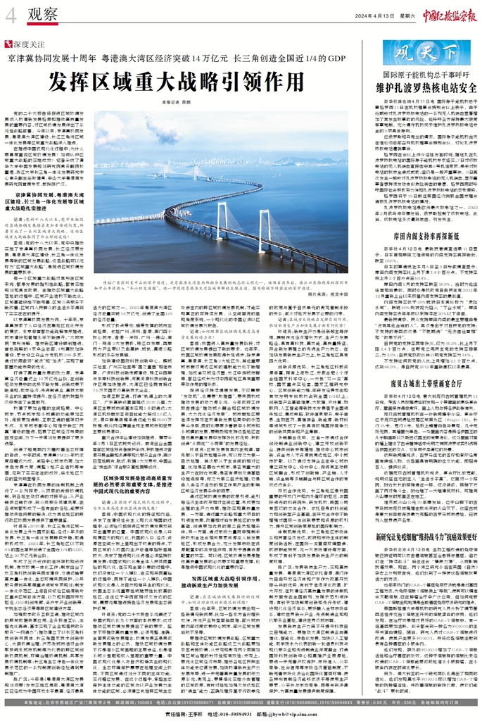 京津冀协同发展十周年 粤港澳大湾区经济突破14万亿元 长三角创造全国近1/4的GDP